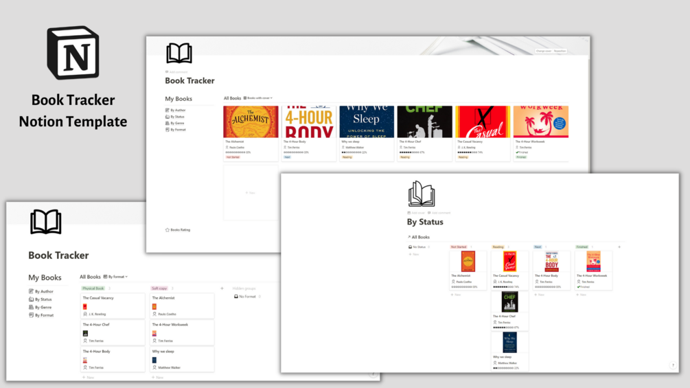 Book Tracker template is for people who don't want to get lost with their books reading progress, because it keeps tracking it for all your books in one place!