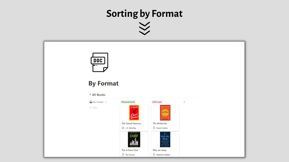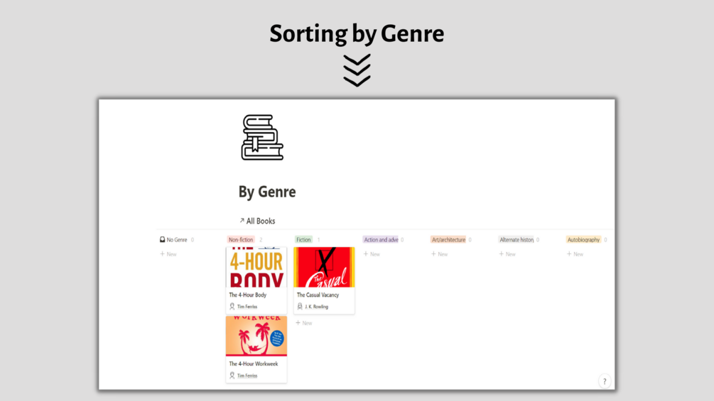 This template helps you keep track of all your books with a customizable view that includes sorting by status, author, genre, format, and rating. Stay consistent and organized!