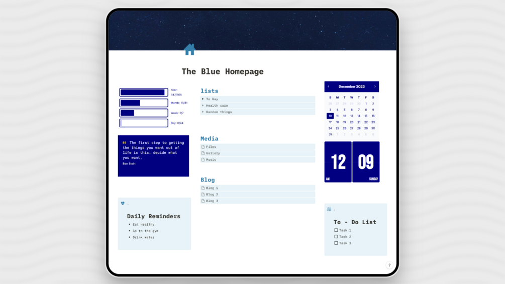 π Introducing the Aesthetic Personal Blue Homepage Notion Template! π